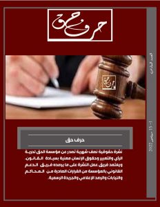 • [1]“حرف حق”.. نشرة حقوقية نصف شهرية تصدر عن مؤسسة الحق لحرية الرأي والتعبير وحقوق الإنسان معنية بسيادة القانون، ويعتمد فريق عمل النشرة على ما يرصده فريق الدعم القانوني بالمؤسسة من القرارات الصادرة من المحاكم والنيابات والرصد الإعلامي والجريدة الرسمية.