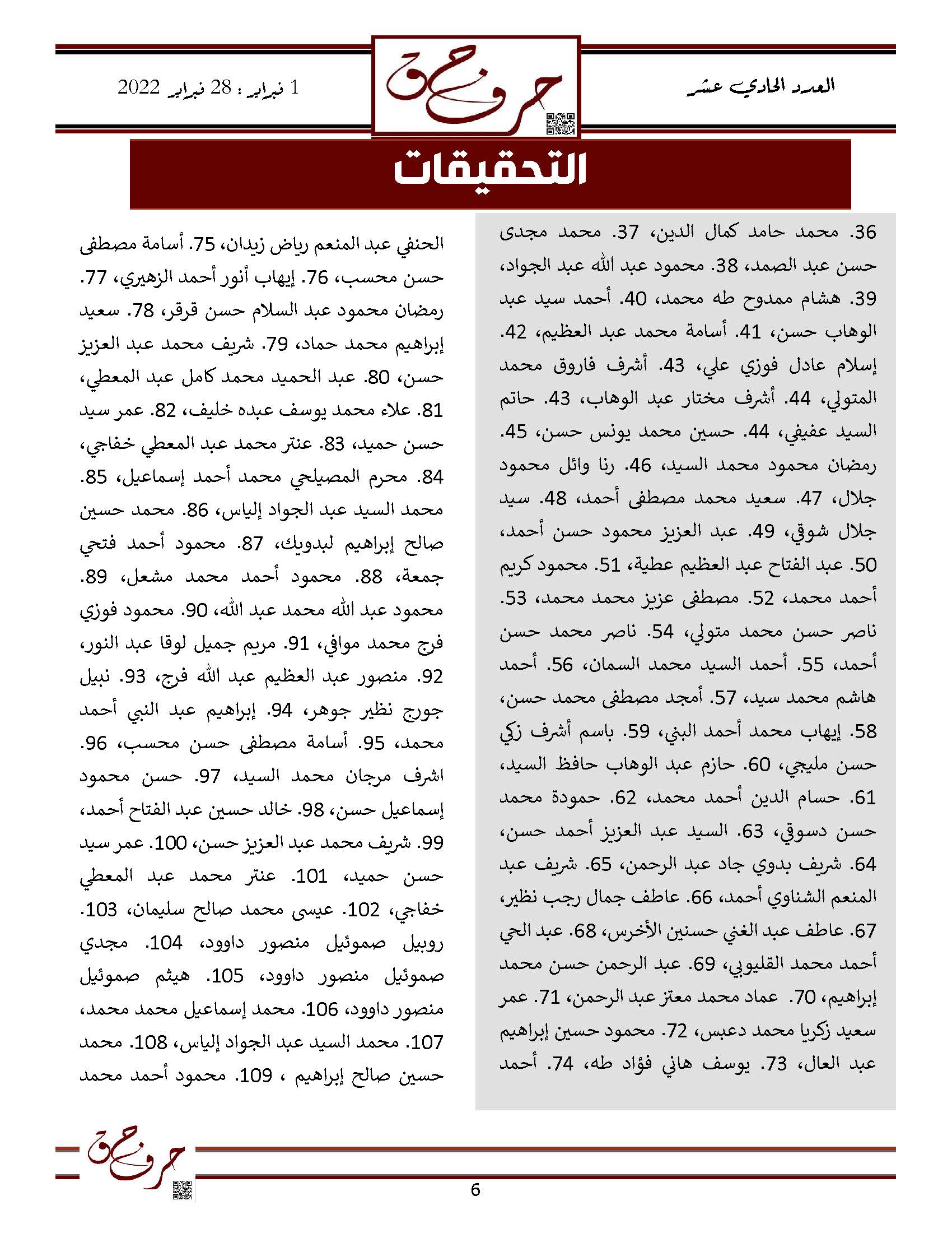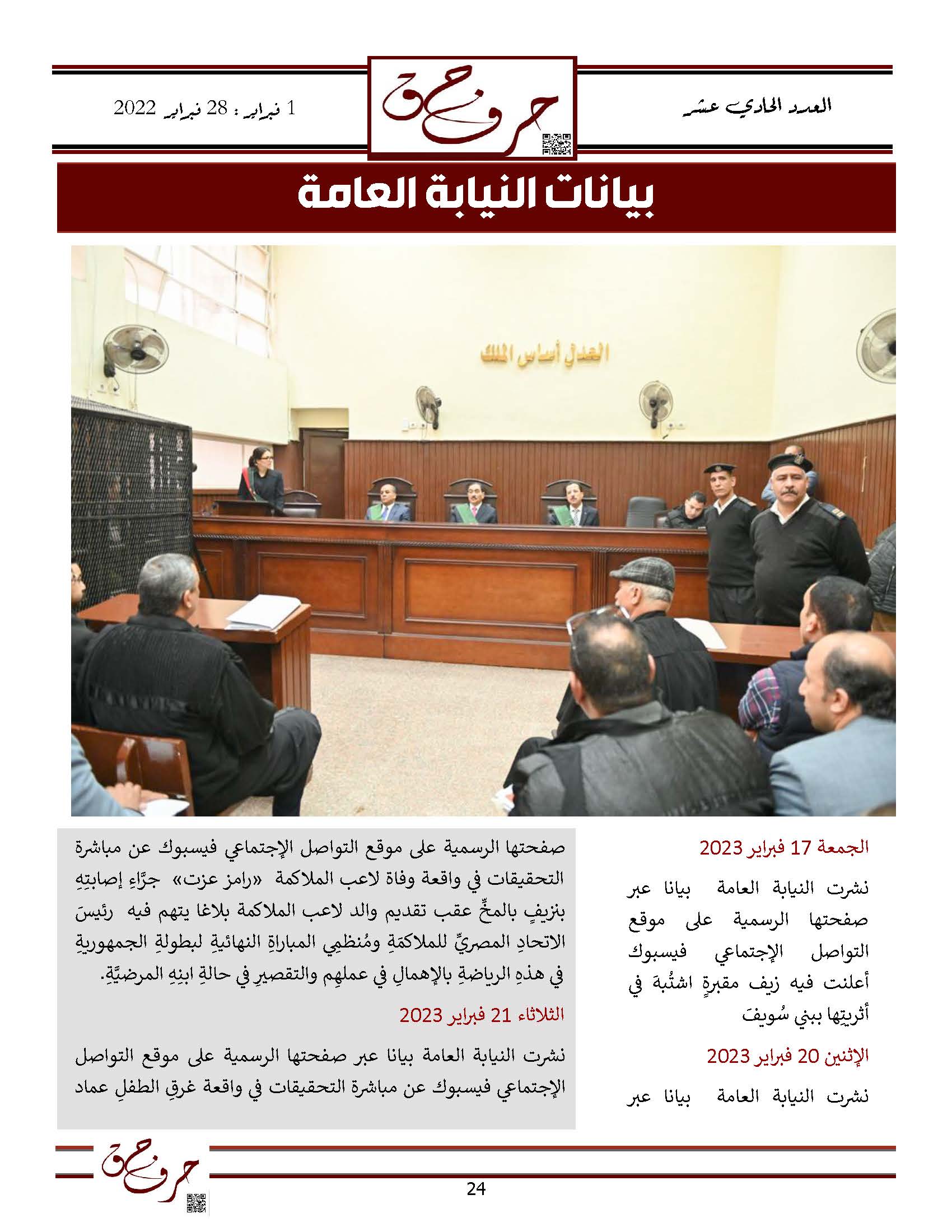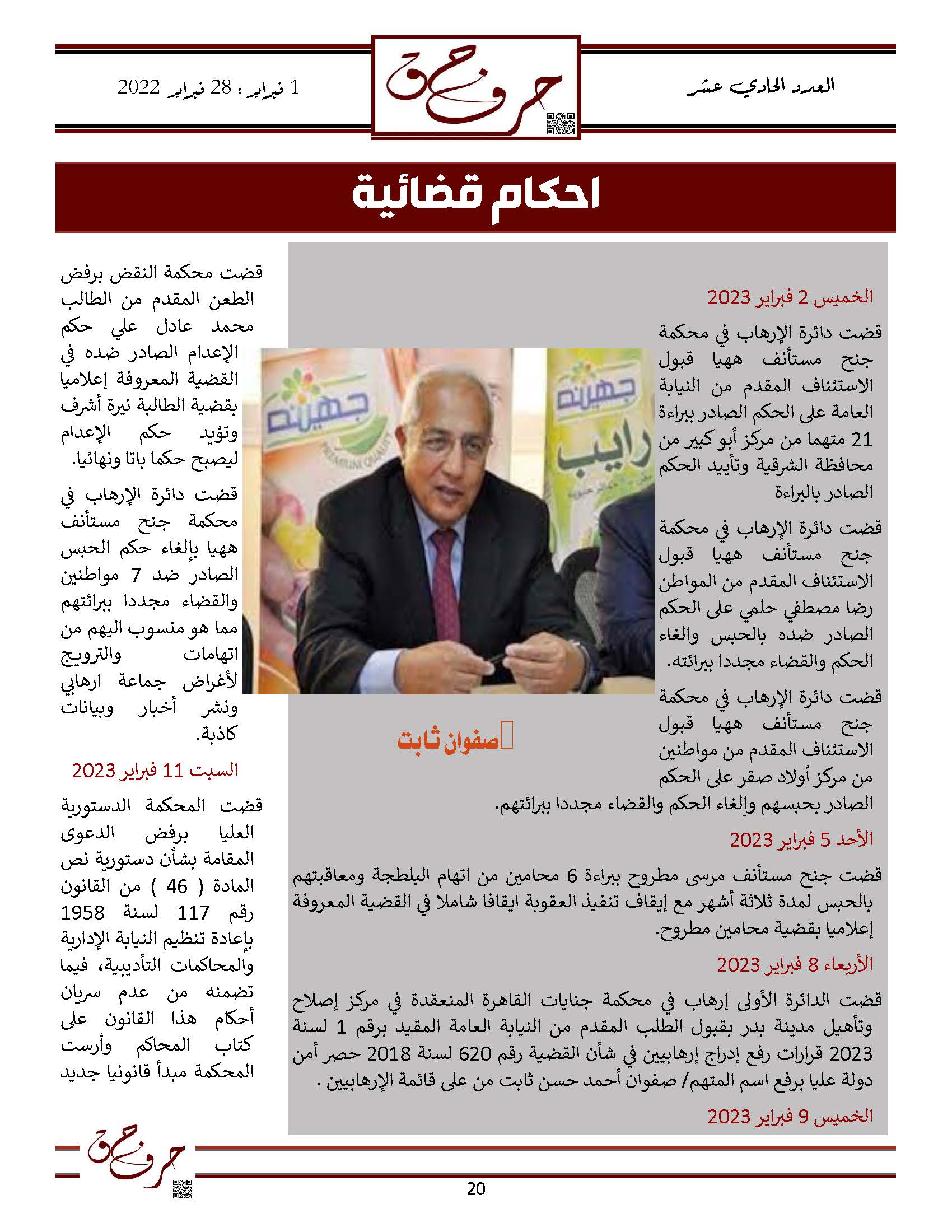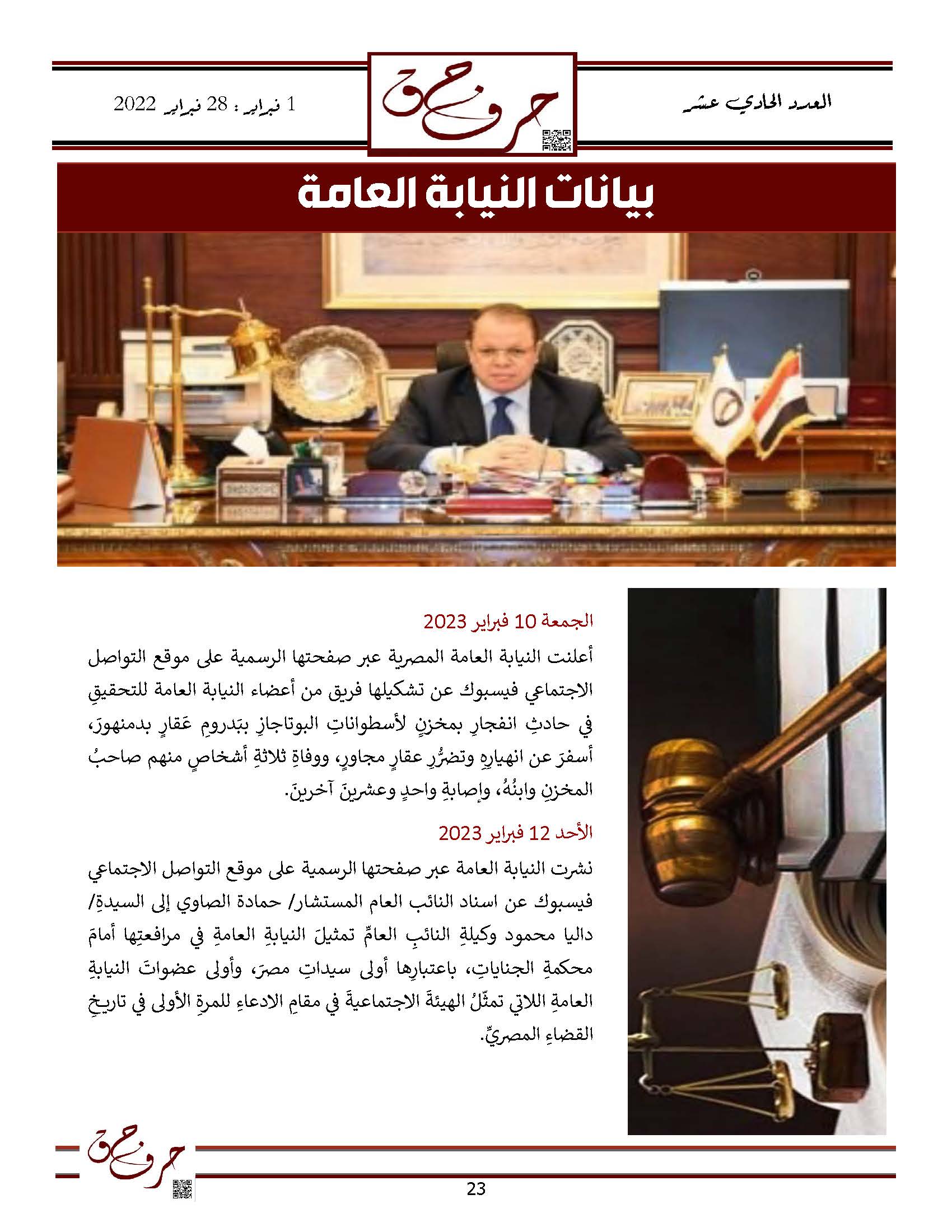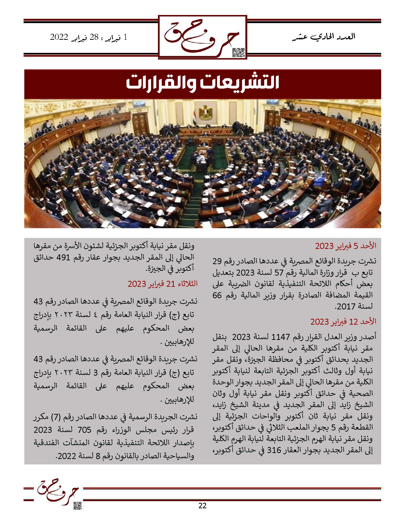 مؤسسة الحق تصدر العدد الحادي عشر من نشرتها الالكترونية ” حرف حق “ عن الفتره من 1 فبراير 2023 حتى 28 فبراير 2023