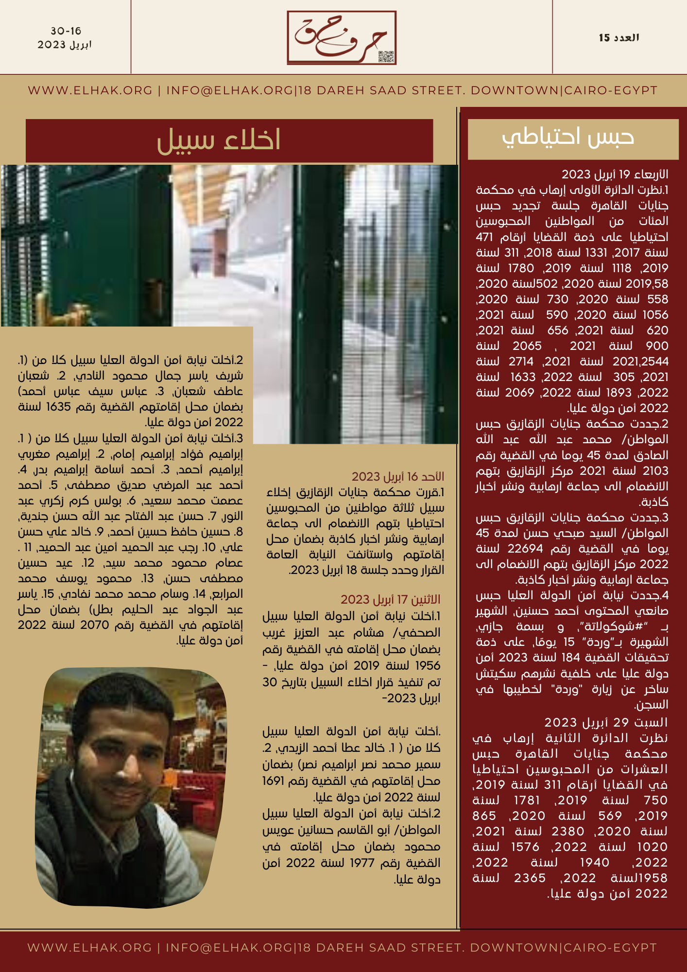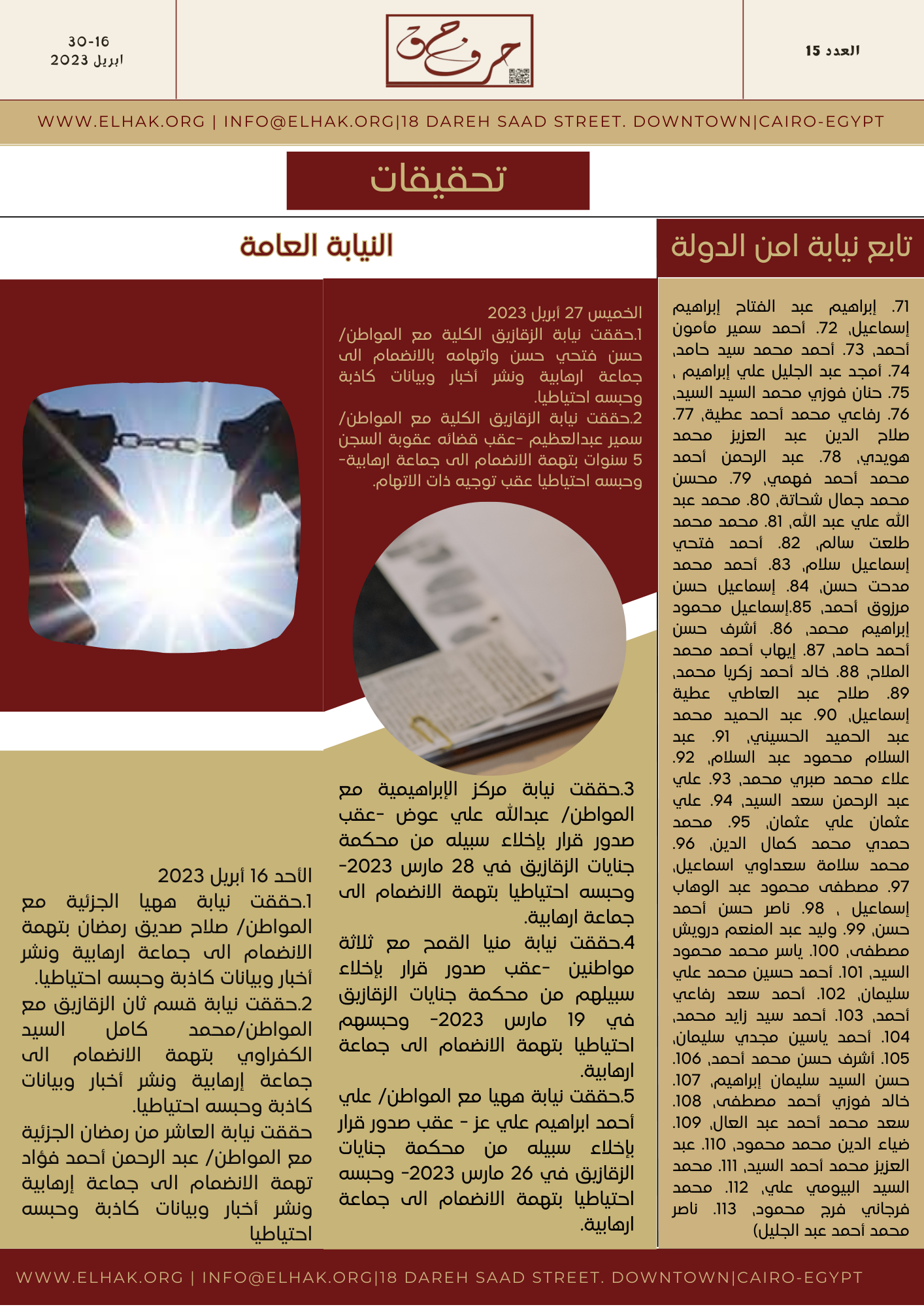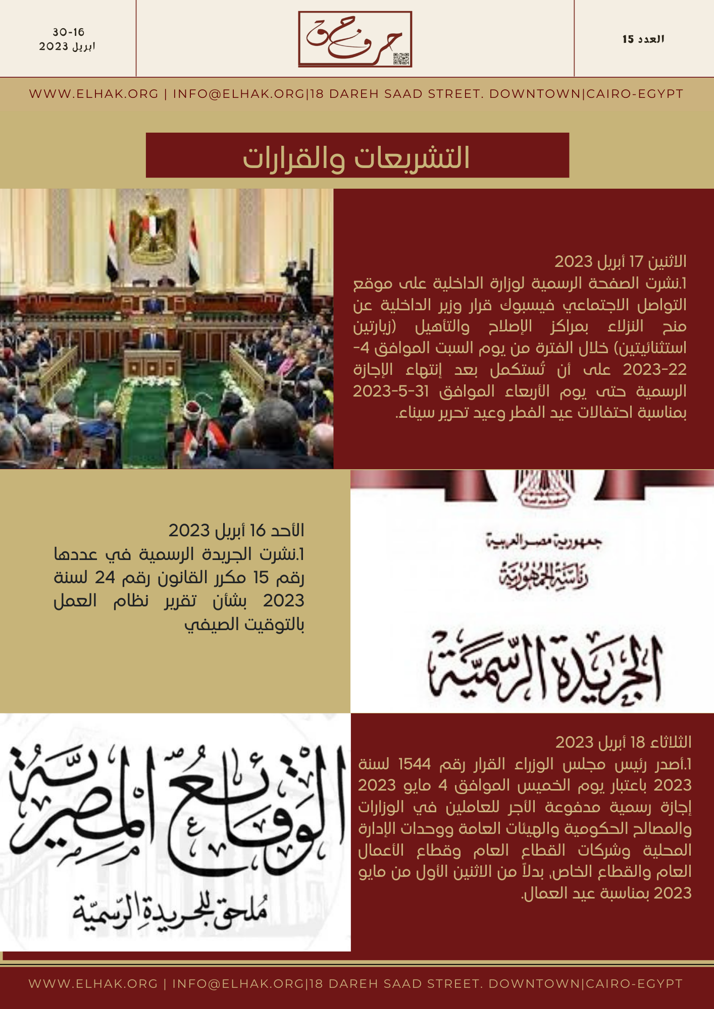 “العدد الخامس عشر ، 16 -30 أبريل 2023”