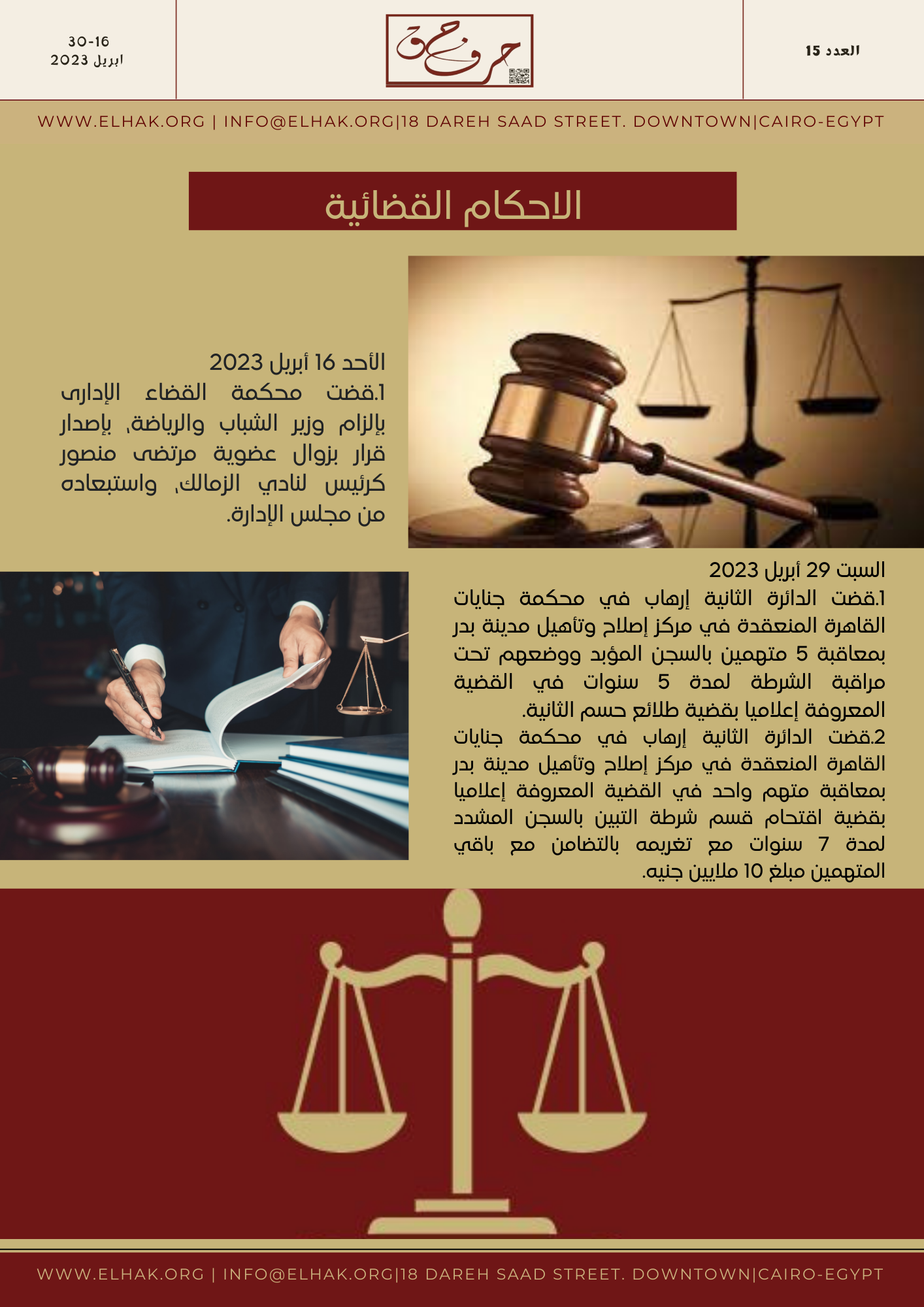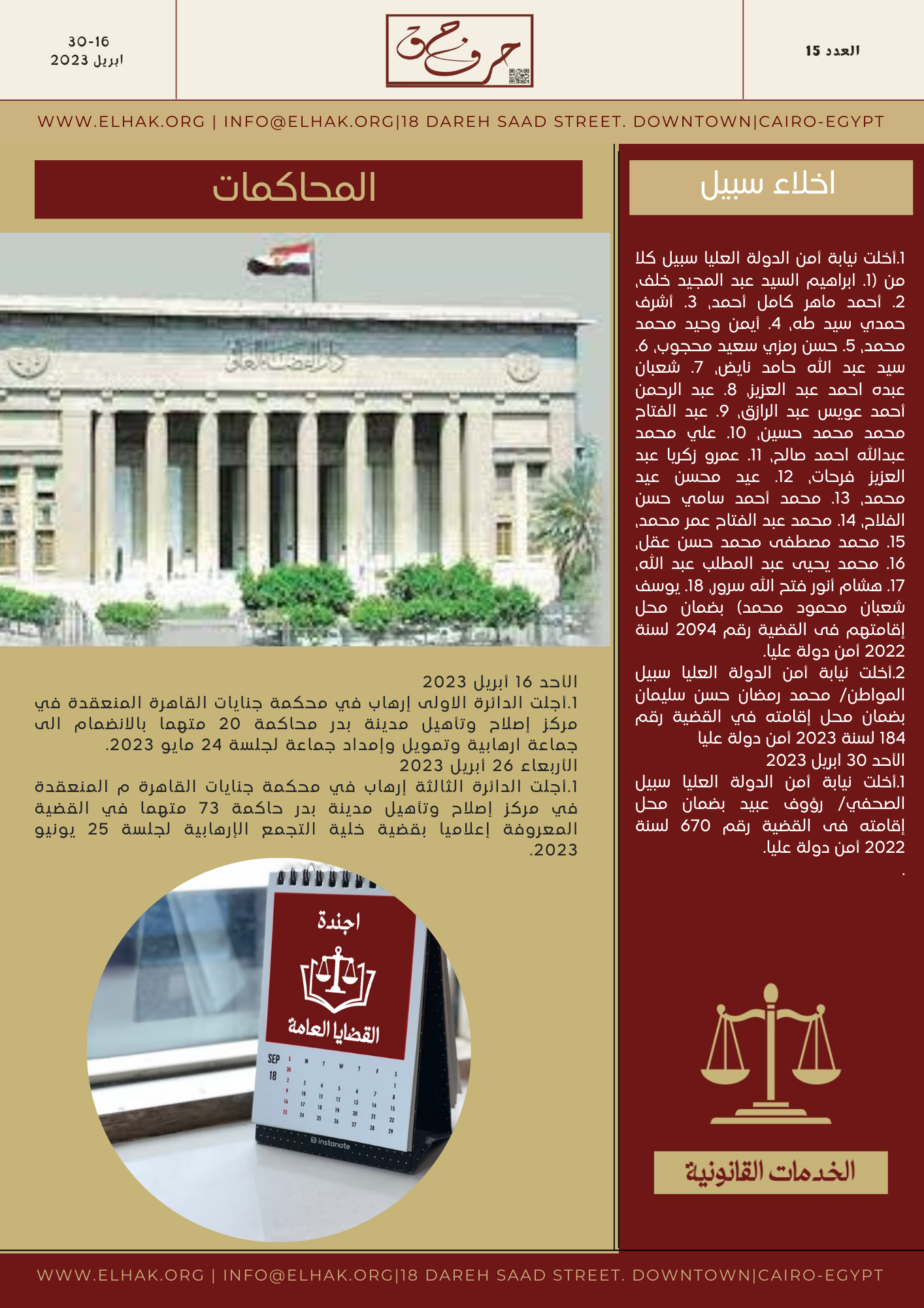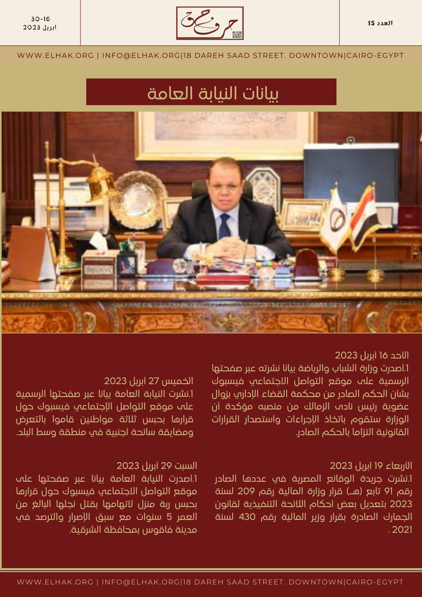 “العدد الخامس عشر ، 16 -30 أبريل 2023”