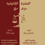 - [1]“حرف حق”.. نشرة حقوقية نصف شهرية تصدر عن مؤسسة الحق لحرية الرأي والتعبير وحقوق الإنسان معنية بسيادة القانون، ويعتمد فريق عمل النشرة على ما يرصده فريق الدعم القانوني بالمؤسسة من القرارات الصادرة من المحاكم والنيابات والرصد الإعلامي والجريدة الرسمية.